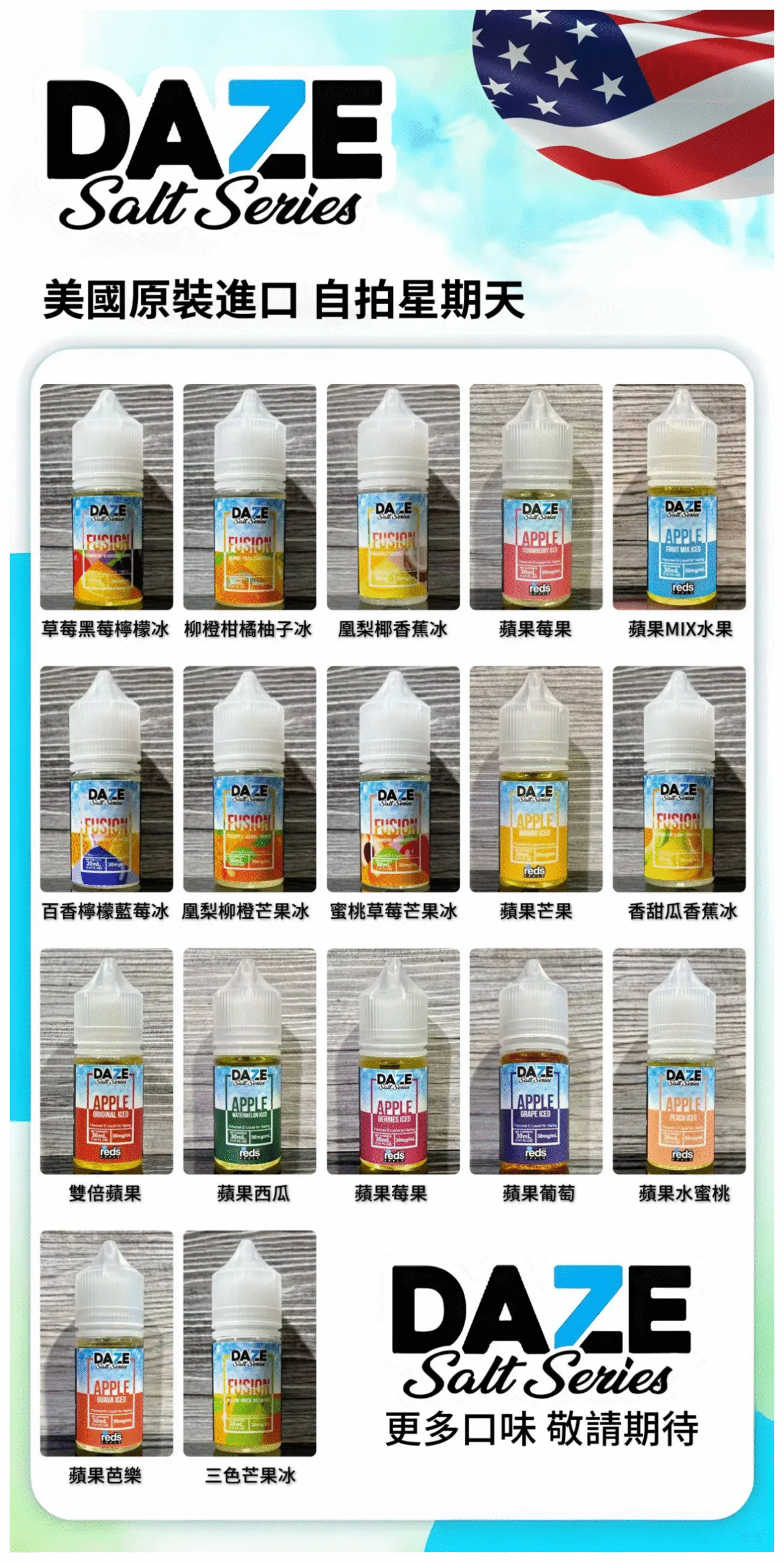 口味 : 草莓黑莓檸檬冰 百香檸檬藍莓冰 凰梨柳橙芒果冰 柳橙柑橘柚子冰 三色芒果冰 蜜桃草莓芒果冰 凰梨椰香蕉冰 蘋果芒果 香甜瓜香蕉冰 蘋果草莓 雙倍蘋果 蘋果西瓜 蘋果莓果 蘋果葡萄 蘋果MIX水果 蘋果水蜜桃 蘋果芭樂