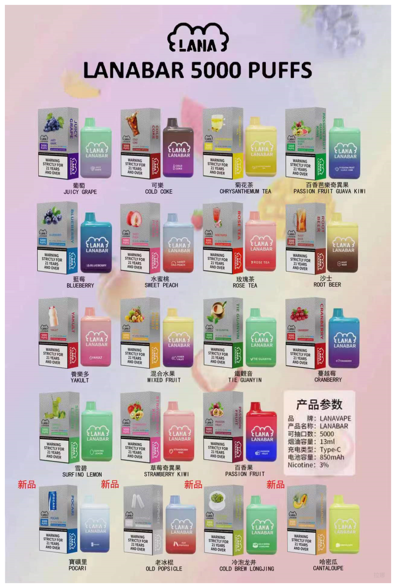 LANA拉娜電子煙 BAR可充电一次性拋棄式霧化5000口(3.0%)