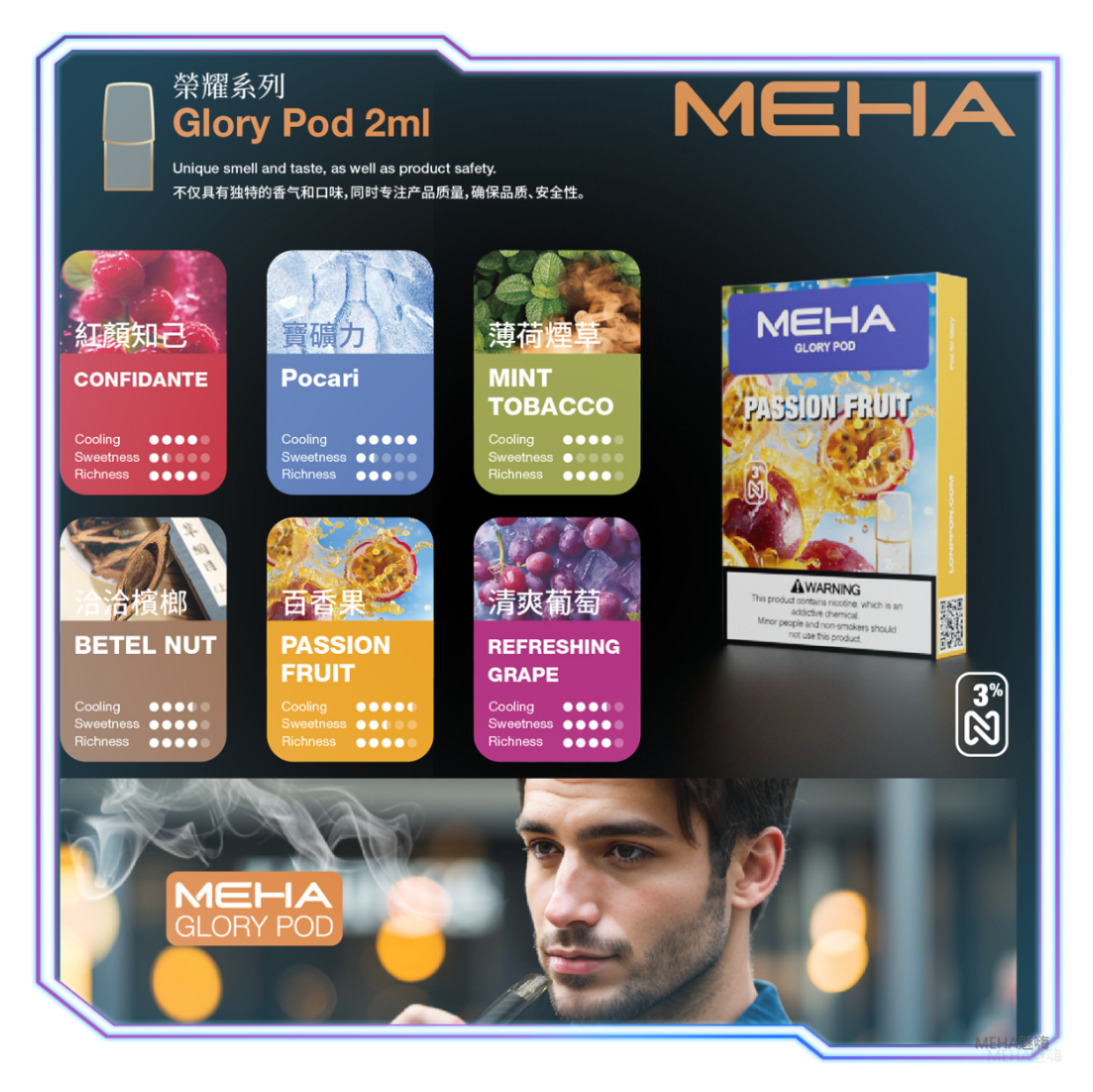 MEHA煙彈專注於極致的還原度,接近傳統香菸的真實風味,滿足對經典吸煙體驗的需求。 - 多樣化口味,選擇豐富